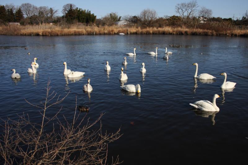 毎年冬になるとたくさんの白鳥が飛来します。小さな池ですが、白鳥に餌を与える人も多く見られ、鳥たちもよく人に懐いています。