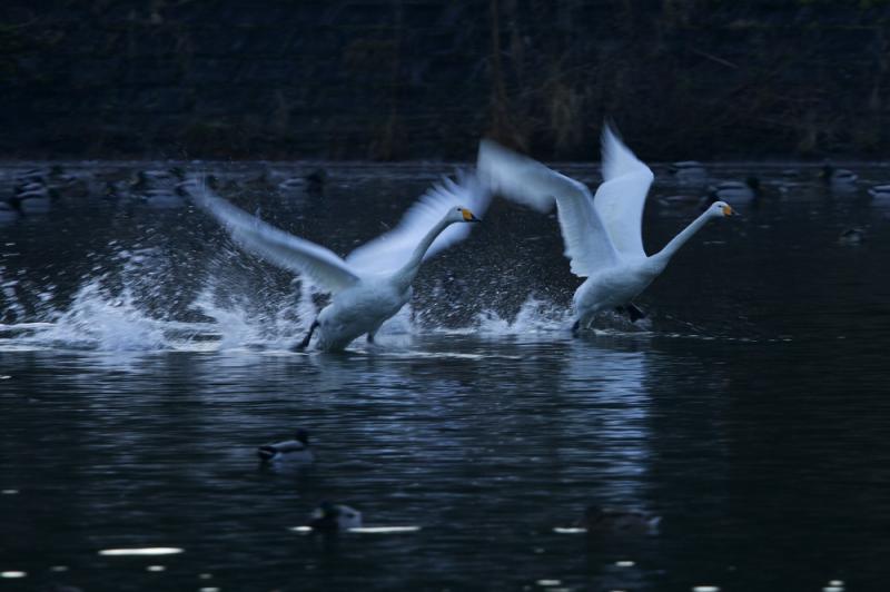広さ約5ヘクタールの農業用溜池である古徳沼には、11月上旬から4月上旬には白鳥が飛来し、多くの観光客で賑わいます。 【白鳥の種類】…オオハクチョウ、コハクチョウ 【最大飛来数】…約160羽 【飛来時期】…11月上旬から4月上旬